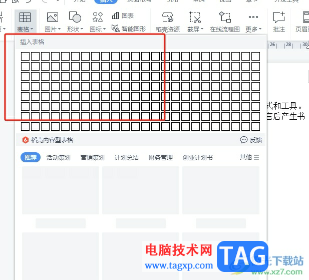3.这时将会弹出下拉选项卡,用户在绘制区域中设置好表格的行数和列数
