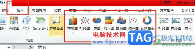 2.接着在页面上方的菜单栏中点击插入选项,将会显示出相关的选项卡,用户在图表板块中选择自己需要的图表样式