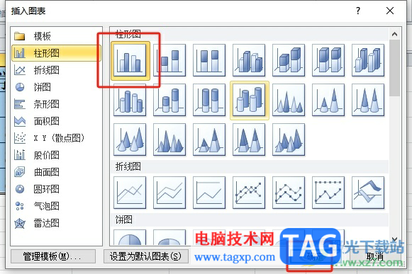 4.进入到插入图表窗口中,用户根据自己的需求来选择其中的图表样式并按下插入按钮即可