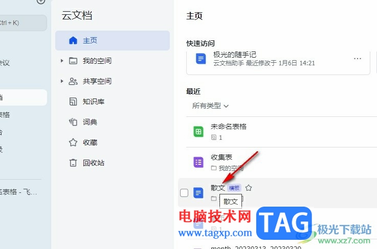 2、第二步,进入云文档页面之后,我们在该页面中点击打开一个需要编辑的文字文档