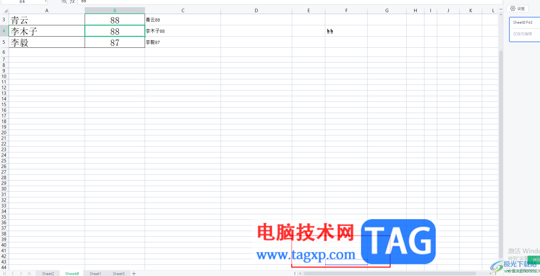 4.如图所示,用户在编辑页面上就可以看到成功定位到被保护的单元格信息