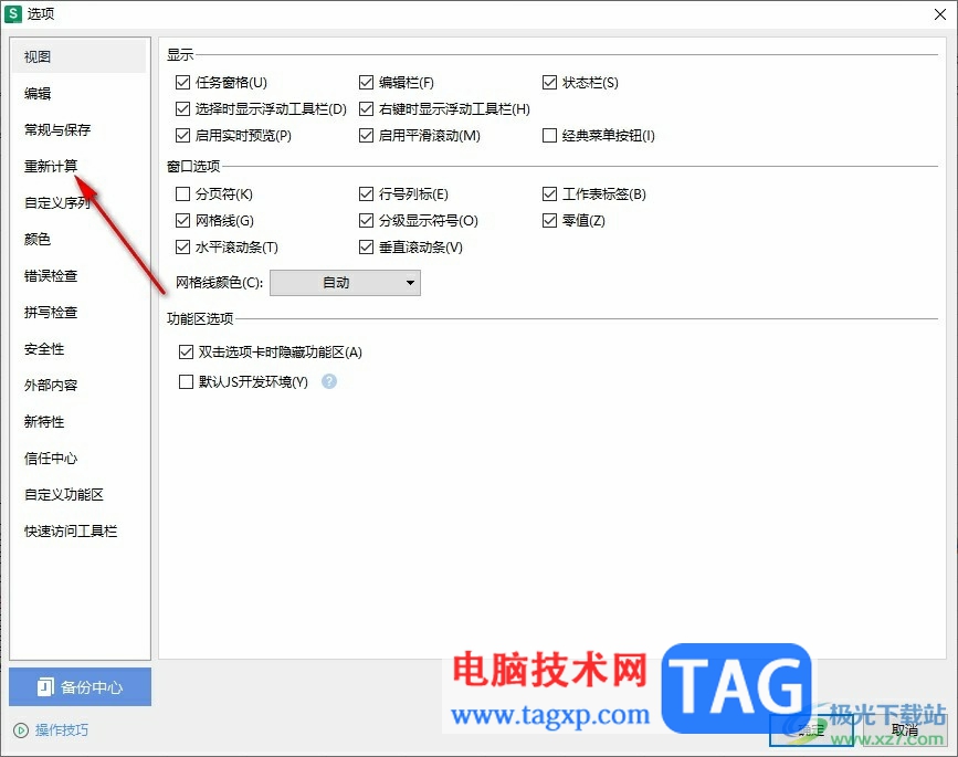 4、第四步,进入WPS的选项页面之后,我们在左侧列表中点击选择“重新计算”选项
