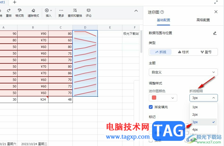 5、第五步,最后我们点击打开折线粗细选项,然后在下拉列表中点击选择一个自己需要的粗细选项即可