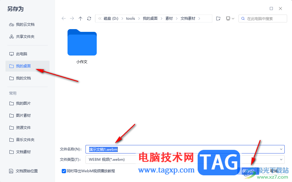 4.随后,即可打开一个另存为的窗口,在该窗口中选择一个输出的位置以及文件名称,再点击保存按钮。