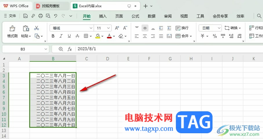 5、第五步,点击确定选项之后,我们在表格中就能看到所有选中的日期都变为自己需要的格式了