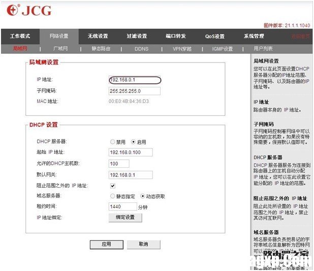 4.网络设置——局域网——局域网设置(IP地址改成和主路由器在同一个网段,但要改一下IP地址的后一位)——DHCP类型(禁用) 应用保持设置