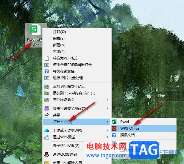 1、第一步,我们在桌面找到自己需要编辑的表格文档,然后右键单击选择“打开方式”选项,接着在菜单列表中选择WPS office
