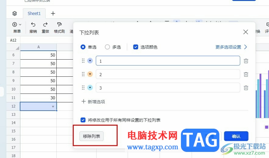 5、第五步,进入下拉列表设置页面之后,我们在该页面中直接点击“移除列表”选项即可