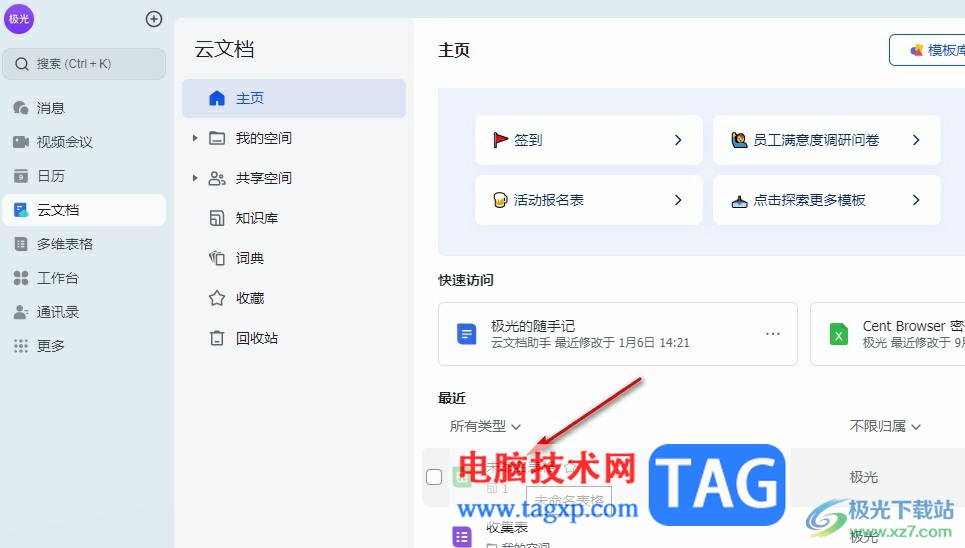 2、第二步,进入云文档页面之后,我们在该页面中找到一个自己需要的表格文档,点击打开该文档