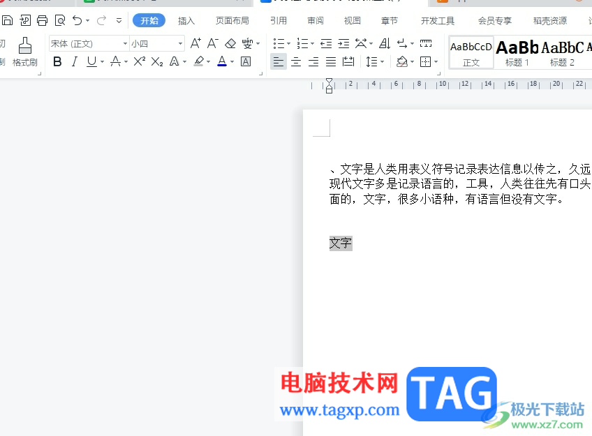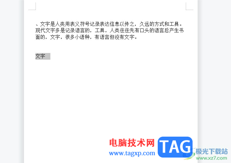 1.用户在电脑上打开wps软件,并来到文档文件的编辑页面上选中文字