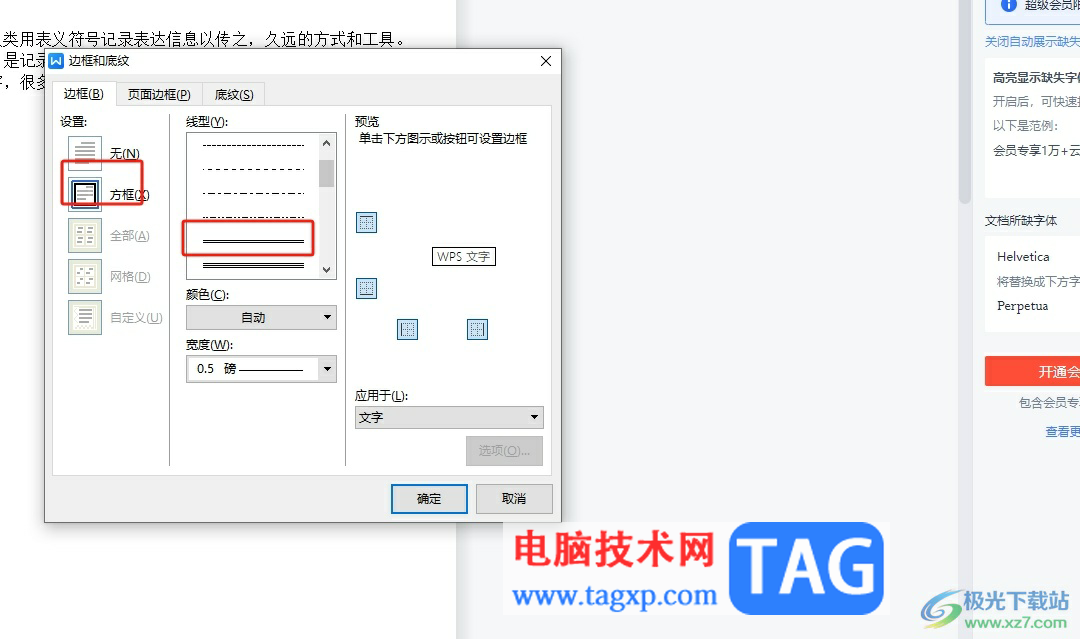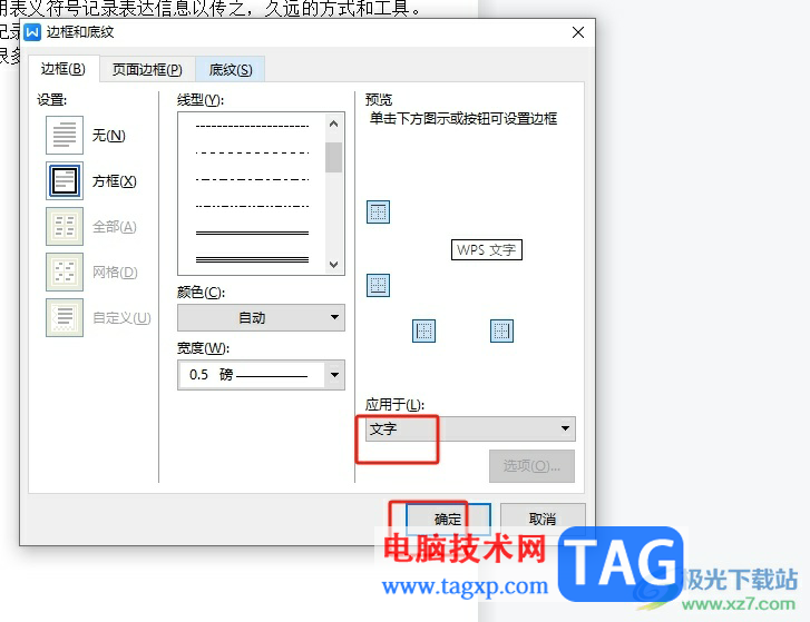 5.随后将边框设置应用在文字上,并按下窗口的确定按钮即可解决问题