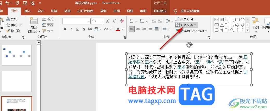 4、第四步,在“开始”的子工具栏中,我们找到“对齐文本”工具,点击打开该工具