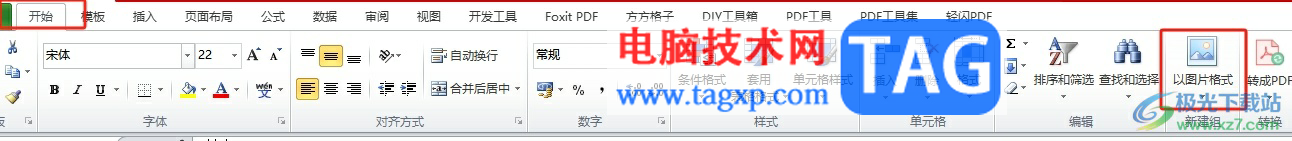 6.此时回到编辑页面上,用户选中表格后,点击菜单栏中的开始选项,在弹出来的选项卡中用户选择其中的以图片格式选项