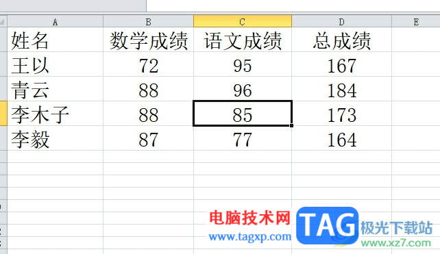 4.这时用户点击表格中的任意一个数字后,就会发现表格进入了阅读模式,所选数值所在的行和列被高亮显示出来