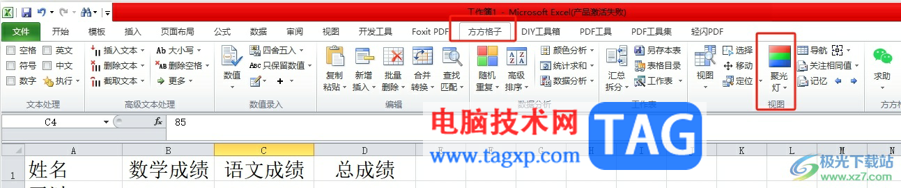 excel是一款专业的电子表格制作软件,它提供的实用的功能能够让用户避免许多的麻烦和重复操作过程,因此excel软件能够有效提升用户的办事效率,当用户在excel软件中编辑表格文件时,想要查看录入的数据是否有误,就可以开启阅读模式,像wps软件中的阅读模式一样,可以高亮显示出所选数值所在的行和列,这样可以更好的查看数据,可是在excel软件中并没有阅读模式功能,这就需要用户利用方方格子插件来实现,用户可以在百度搜索下载官方版本,接着在方方格子工具箱中找到聚光灯功能即可解决问题,那么接下来就让小编来向大家分享一下excel开启阅读模式的方法教程吧,希望用户能够喜欢。
