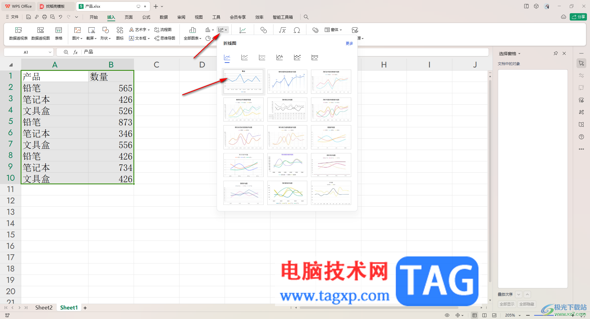 3.随后即可展示出折线图的相关图表样式,将其中一个图表样式进行点击插入。