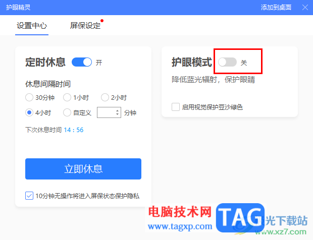 3.点击进入到健康护眼的窗口中,将【护眼模式】后面的开关按钮打开即可。