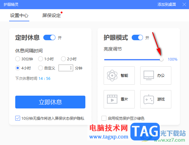 以上就是关于如何使用360安全卫士开启护眼模式的具体操作方法,在360安全卫士中存在的功能是很丰富的,对于护眼模式功能的开启操作方法十分的简单,可以上盒子智能、办公、看片以及游戏等类型的护眼亮度,感兴趣的话可以操作试试。