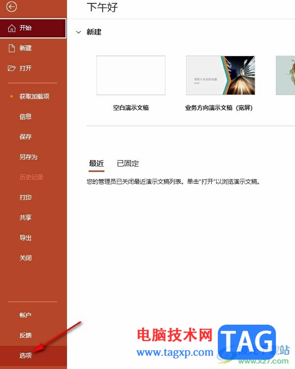 3、第三步,进入文件页面之后,我们在左侧列表中点击打开“选项”