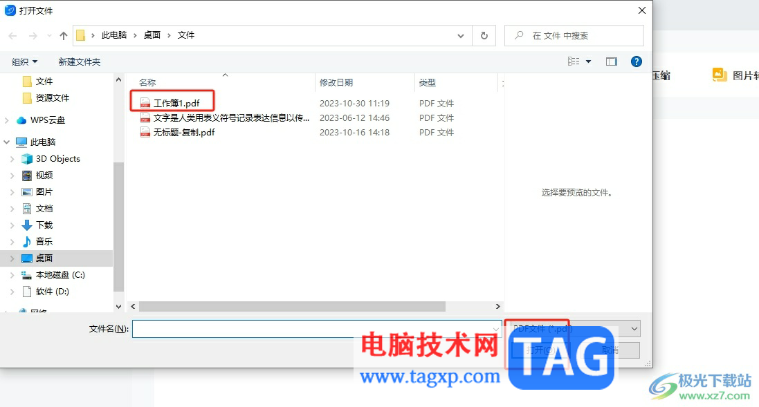 2.进入到文件夹窗口中,用户选择pdf文件后按下打开按钮来进行转换