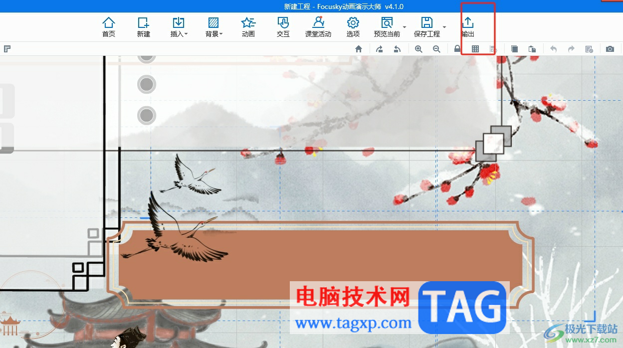 3.接着点击页面上方菜单栏中的输出选项,将会进入到输出focusky窗口中