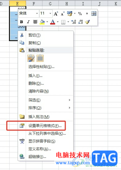 2.接着用户用鼠标右键点击数据,弹出右键菜单后,用户选择其中的设置单元格格式选项