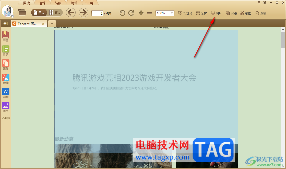 2.随后,在页面的工具栏中将【打印】按钮用鼠标左键点击一下进入到设置的窗口中。