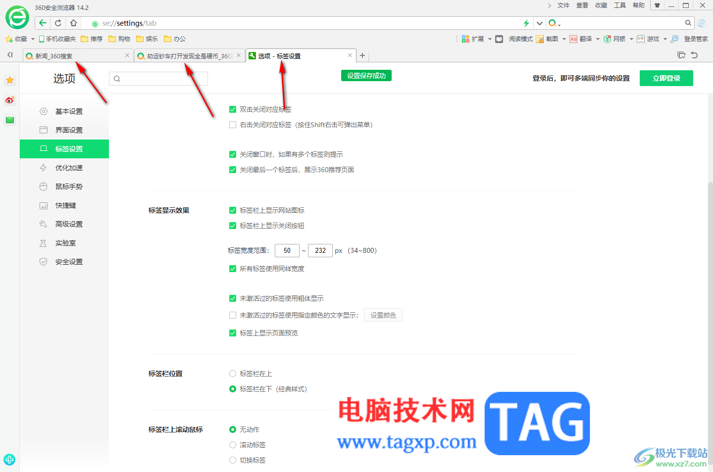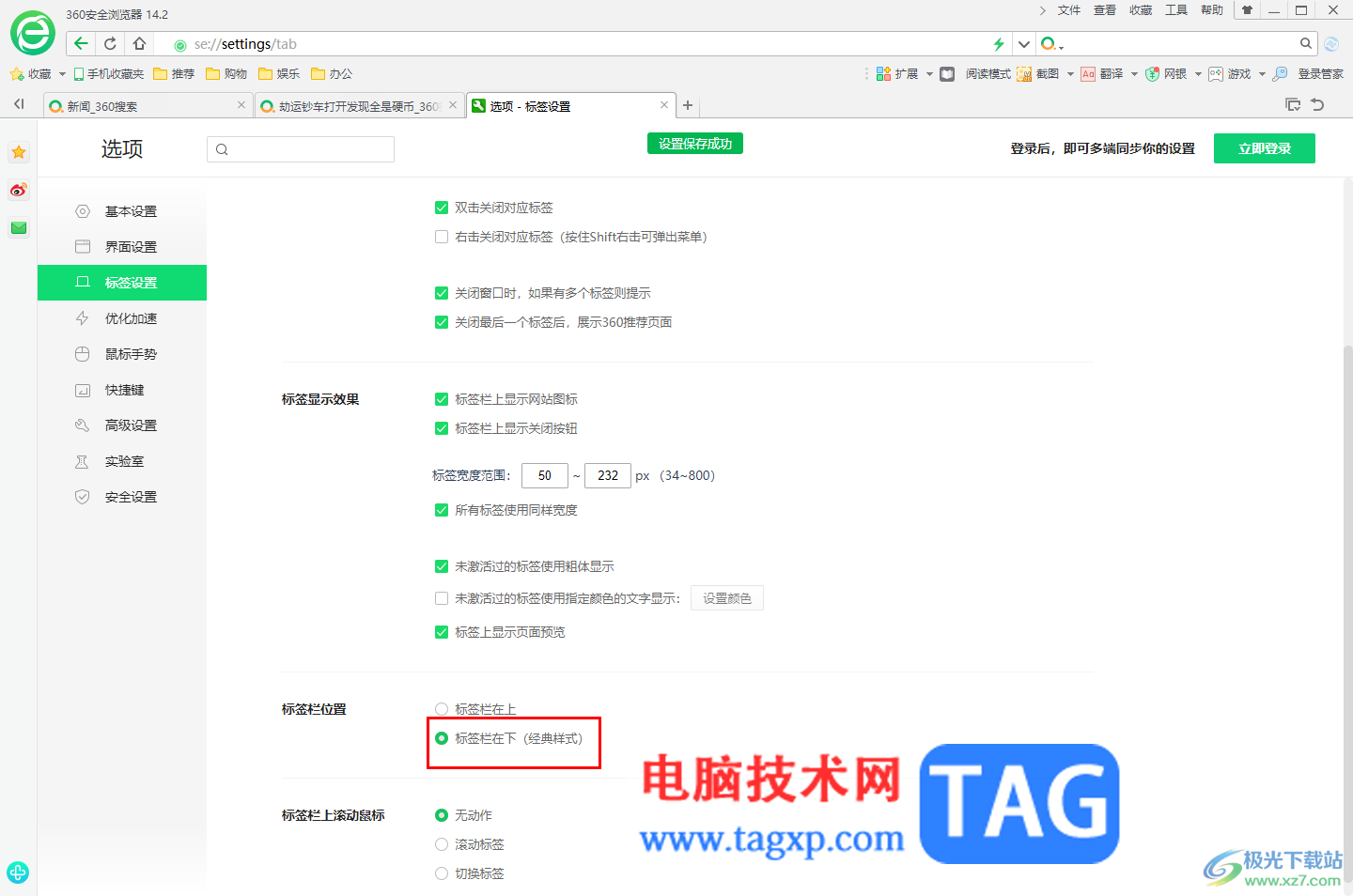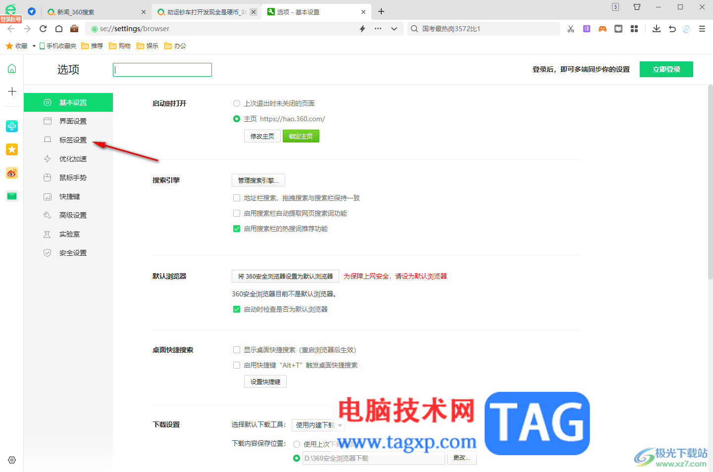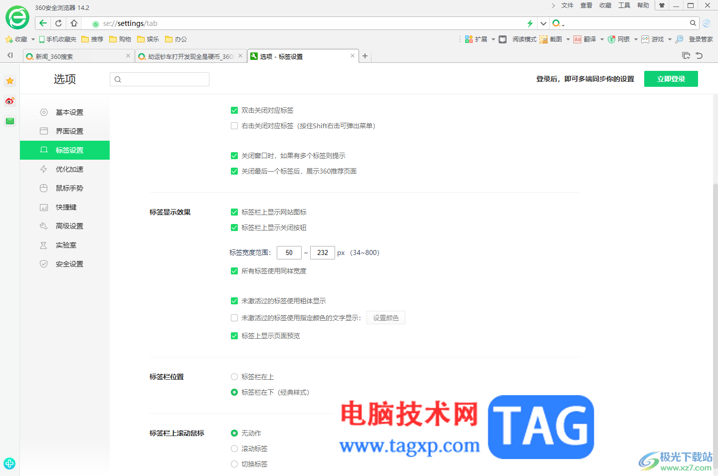 以上就是关于如何使用360安全浏览器设置标签栏显示在下方的具体操作方法,有的小伙伴不习惯标签栏显示在页面的顶部位置,那么就可以通过以上的几个简单步骤进行修改标签栏位置就好了,感兴趣的话可以操作试试。