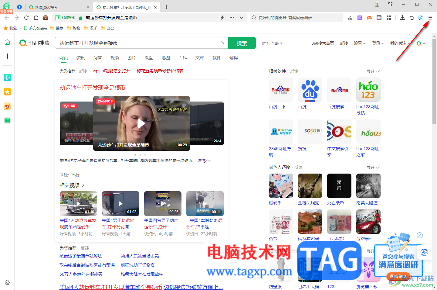 1.首先,我们需要进入到360安全浏览器中,将右上角的【三】图标进行点击。