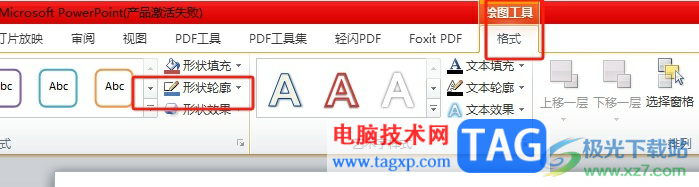 2.在页面上方的菜单栏中点击绘图工具的格式选项,将会弹出相关的选项卡,用户选择其中的形状轮廓选项