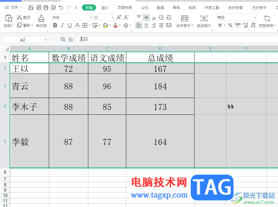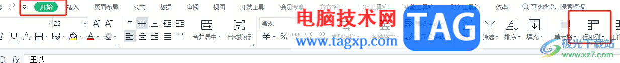 4.用户还可以在页面上方的菜单栏中点击开始选项,将会显示出相关的选项卡,用户选择其中的行和列选项
