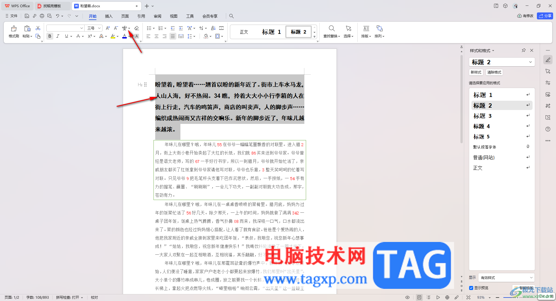 1.首先,我们需要进入到文档中,将需要进行设置的文字选中,再点击工具栏中的【拼音指南】图标。