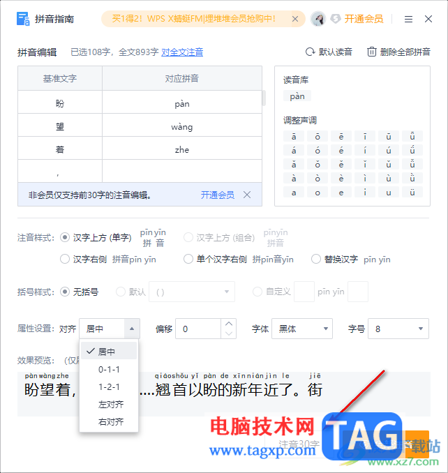 4.之后就可以点击底部的【全部注音】进行点击一下即可,如果你不是会员的情况下,只能注音30个。