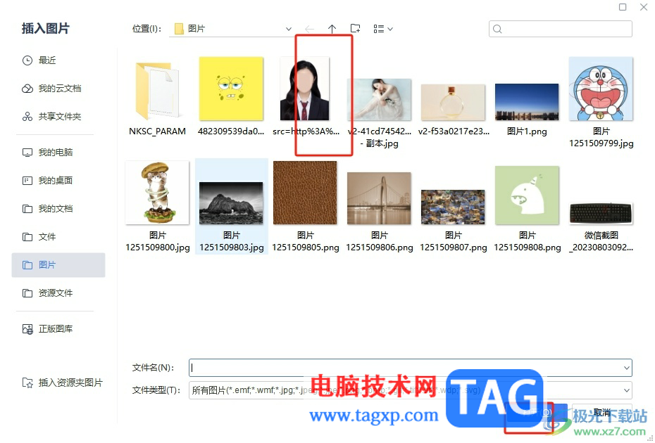 4.进入到文件夹窗口中,用户按照自己的需求来选择图片后按下打开按钮