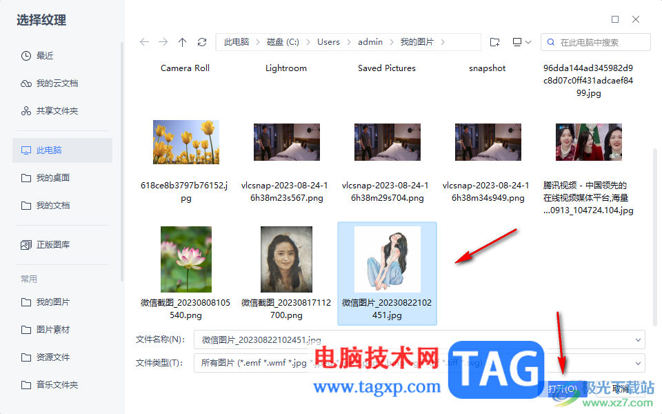 4.之后在打开的窗口中,我们需要选中自己要添加的图片,将其选中点击打开。