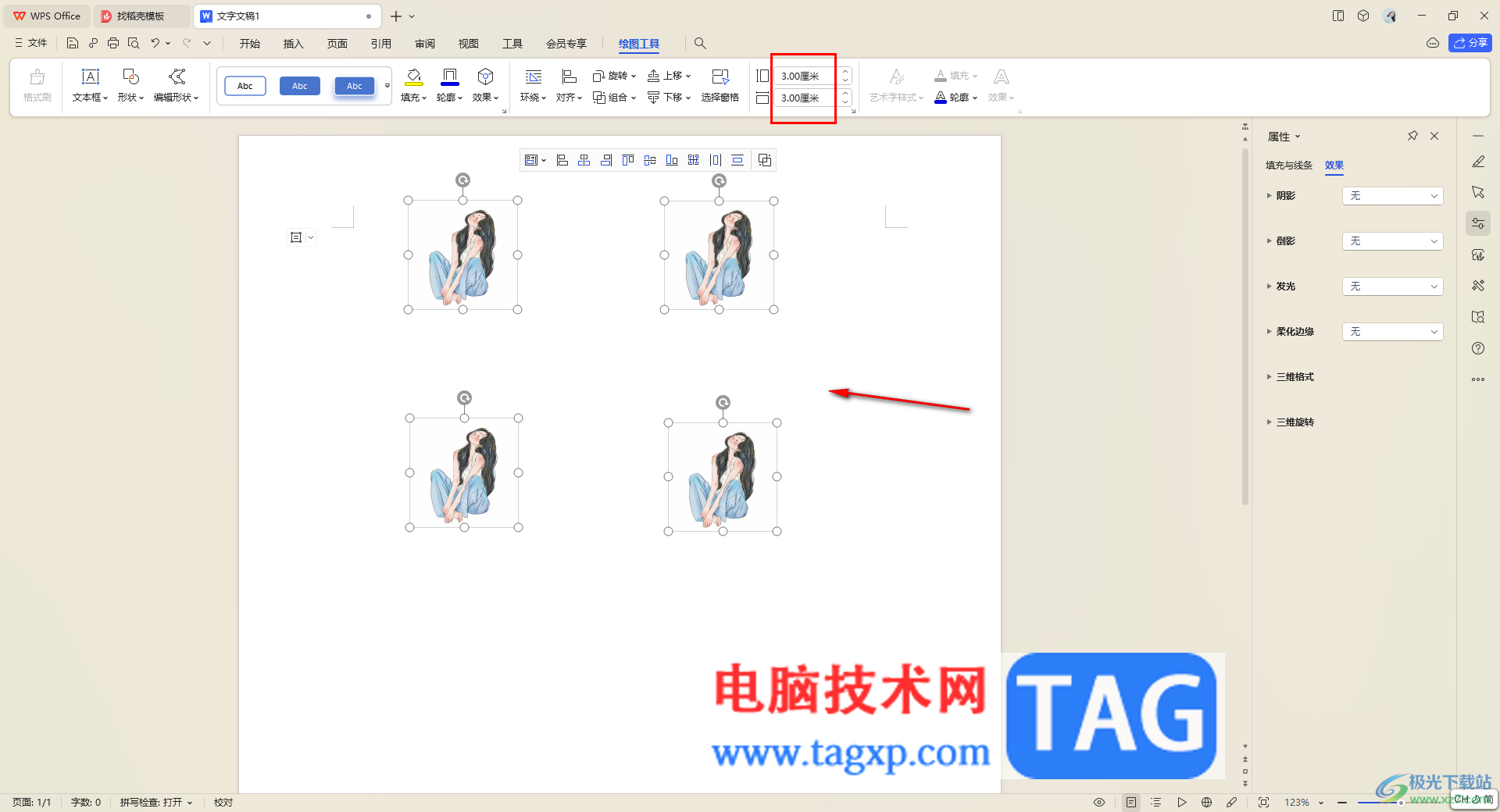6.之后,我们再将这些填充的图片选中,然后在工具栏中设置一下大小参数,那么图片就会批量进行调整,如图所示。