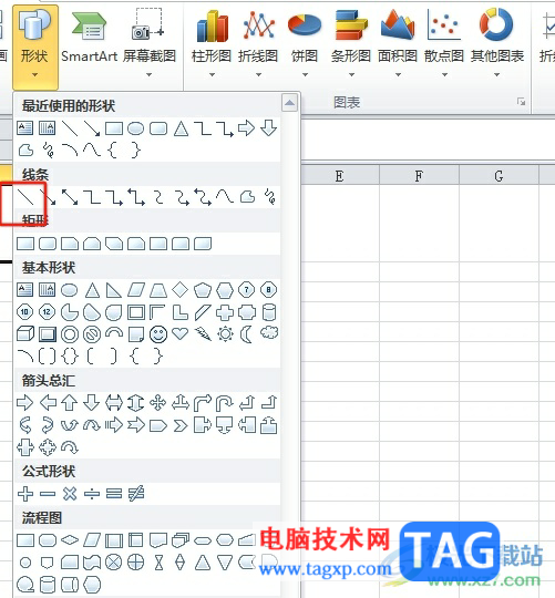 3.在弹出来的下拉选项卡中,用户选择其中的直线选项