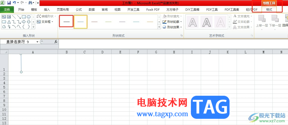 4.这时用户就可以在单元格中绘制直线,并在绘图工具的格式选项卡中将直线颜色设置与单元格边框一样的颜色