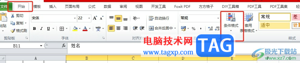 2.在菜单栏中点击开始选项,将会显示出相关的选项卡,用户选择条件格式选项