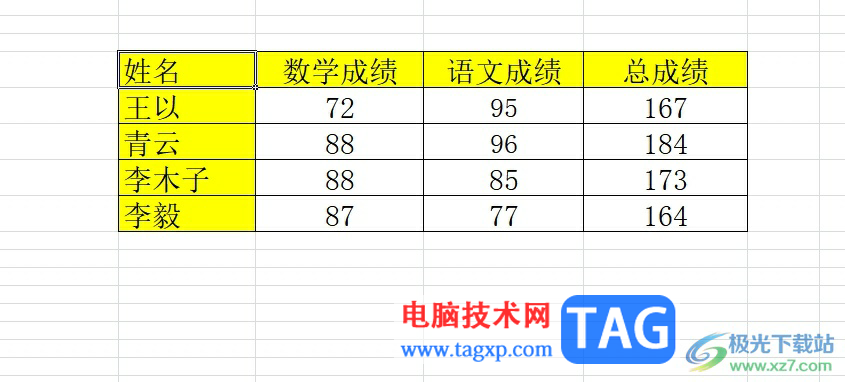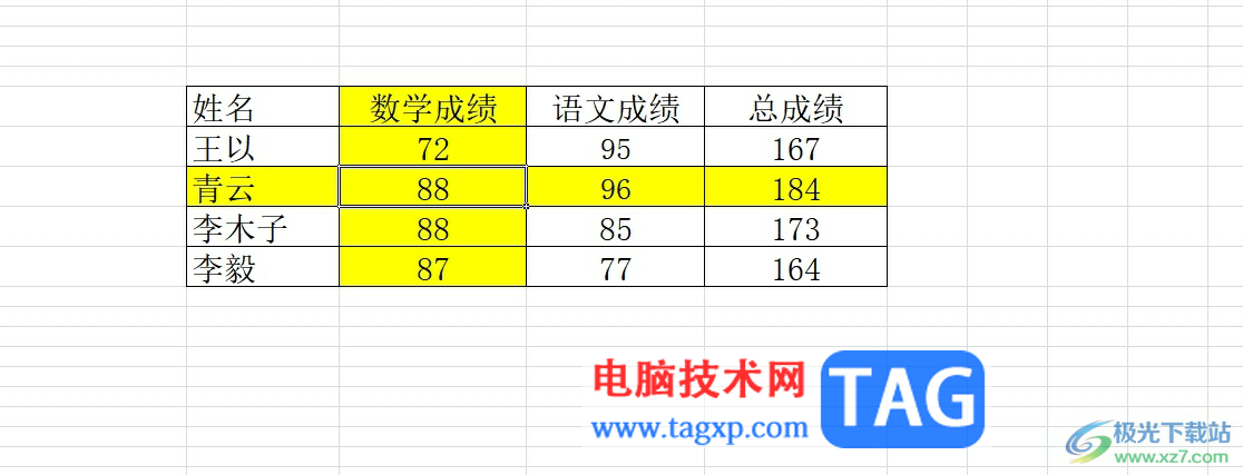 10.关闭编辑器窗口后,回到编辑页面上,用户点击其中的一个单元格,就会发现对应行和列都显示出设置的黄色了