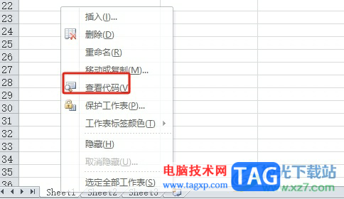 8.用户需要用鼠标右键点击工作表,弹出右键菜单后,用户选择其中的查看代码选项