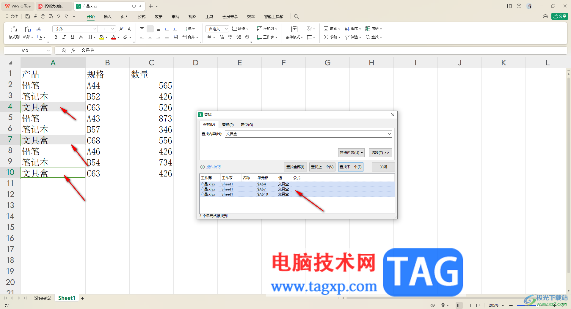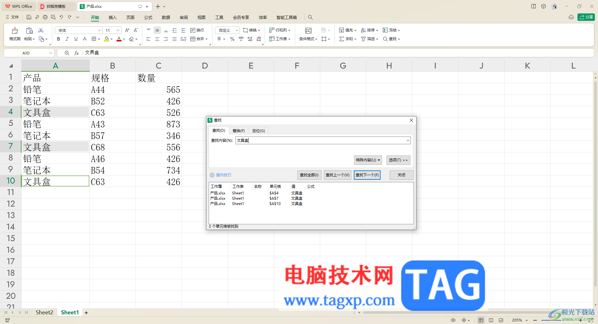 以上就是关于如何使用WPS excel查找快速查找内容的具体操作方法,如果你编辑了大量的数据,那么查找其中一部分内容其实是比较困难的,但是我们可以通过以上的查找功能进行快速的查找操作即可,感兴趣的话可以试试。