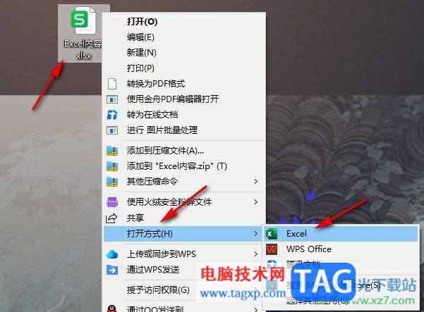 1、第一步,我们先右键单击一个表格文档,然后点击打开方式选项,再选择Excel选项
