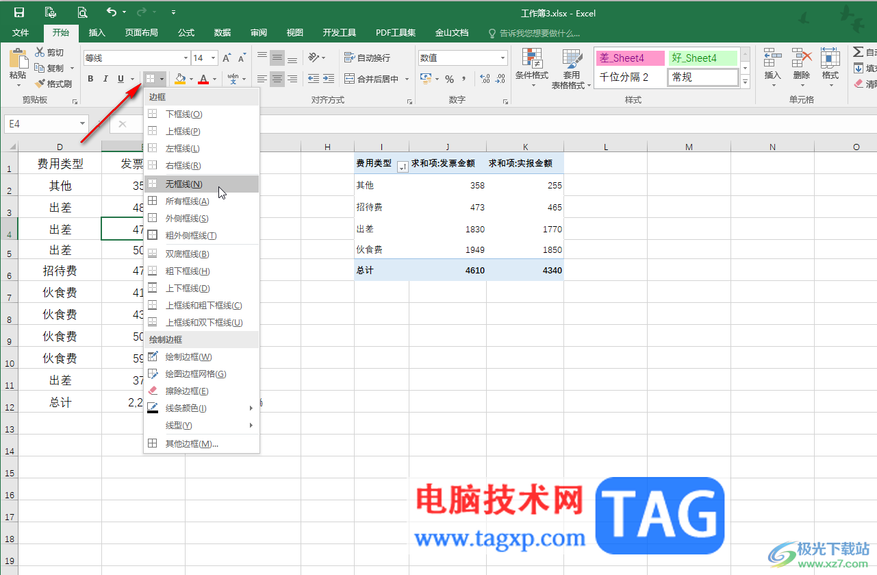 第五步:如果有需要还可以选中表格后在“开始”选项卡中点击如图所示的图标设置边框线效果。