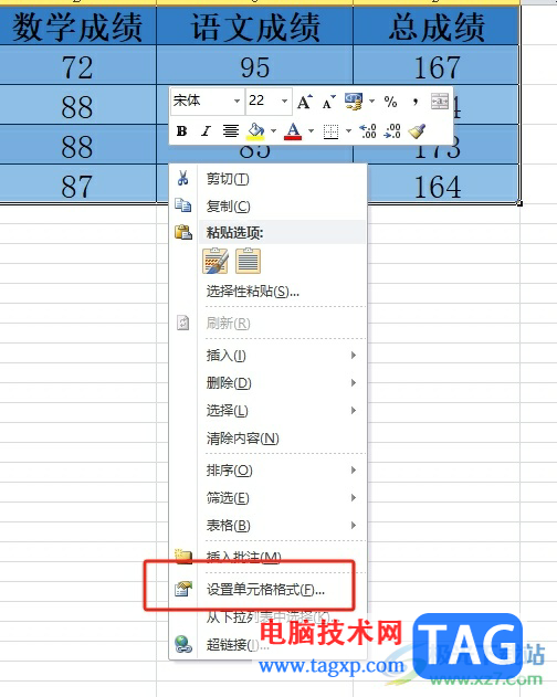 2.接着全选表格并用鼠标右键点击,弹出右键菜单后,用户选择其中的设置单元格格式选项