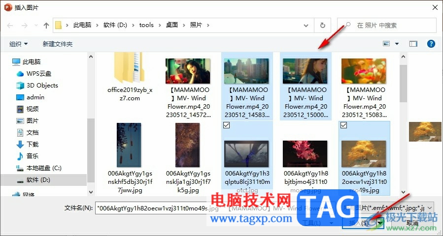 4、第四步,进入文件夹页面之后,我们按住“Ctrl”键,然后选中所有需要插入的图片,接着点击“插入”选项