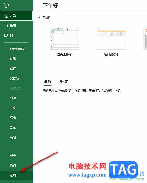 3、第三步,进入文件页面之后,我们在左侧列表的最下方点击打开“选项”
