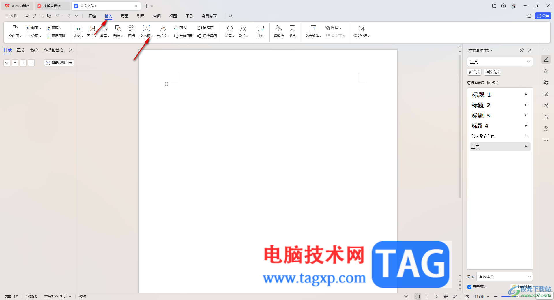 1.首先我们需要在页面顶部点击【插入】-【文本框】。