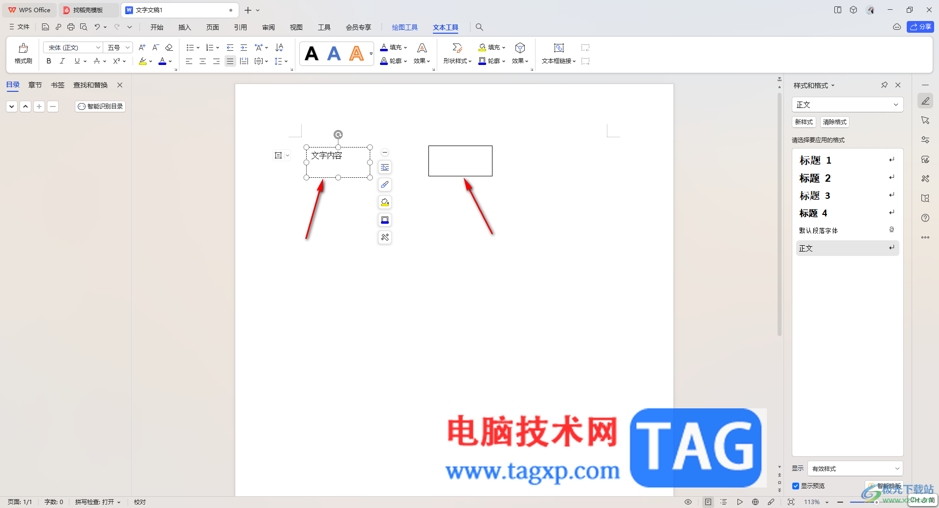 2.然后在页面上插入两个文本框,第一个可以进行文字的编辑,第二个不用编辑任何内容。