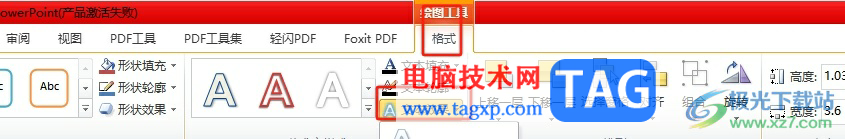 3.这时在菜单栏中点击绘图工具的格式选项,弹出相关的选项卡后,用户选择其中的文本效果选项